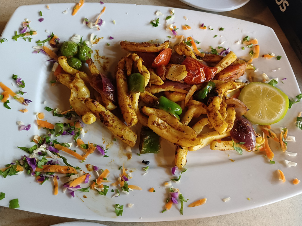 从客运站加上路程,两个多小时也够了。回城时想看传说中的老瀑布饭店,就是阿加莎克里斯蒂创作《尼罗河惨案》的写作背景。问了其中一两个人,结果全车的人都知道我们要去。巴士司机给我们停在附近,还耐心的给我们指引了方向。已经有载满欧美乘客的豪华大巴往那边开,到老瀑布酒店门口,问我们房间号,我们就说去吃晚饭。工作人员说要买票。听群里的人说,去那吃饭要花大几千人民币,看看旅游博主的游记就好。回到青旅附近,买了另一家鸡肉,只有100磅,味道要比昨天的差一些。同伴还点菜番茄鸡蛋和蚝油生菜。