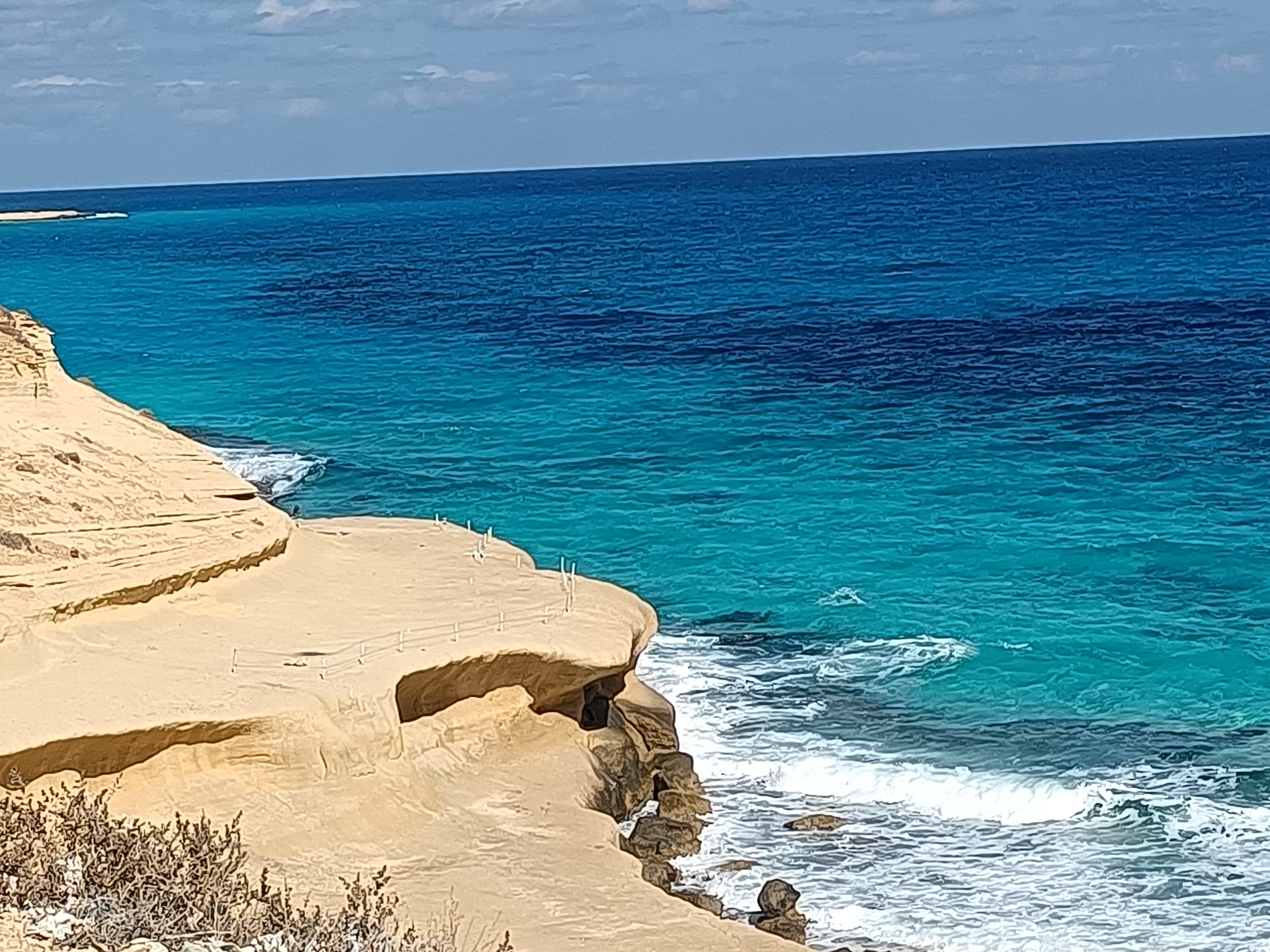 D5(10.19):马特鲁第一天。早餐吃到了暖心的红薯粥,9点半坐上包车司机的车,来到亚历山大图书馆,虽然很壮观,不过比起国家图书馆还是差些。参观出来,上车开到马特鲁港,车程4个多小时,入住提前订的公寓,有两间卧室和厨房,然后去干饭。海鲜宴960多埃磅,合每人35元人民币,吃得很满足,还打包了一点点,同胞都碰见了好几桌。饭罢去市场和超市采购,先是喝了杯果汁,再回到驻地喝茶。行李有限,带的茶预感不太够喝,买了当地的玫瑰茶,有人洗澡,其余人喝茶。(只有一个浴室,要轮流洗澡)。感人的是,同伴借吹风机,老板特意让小弟去新买了一台。