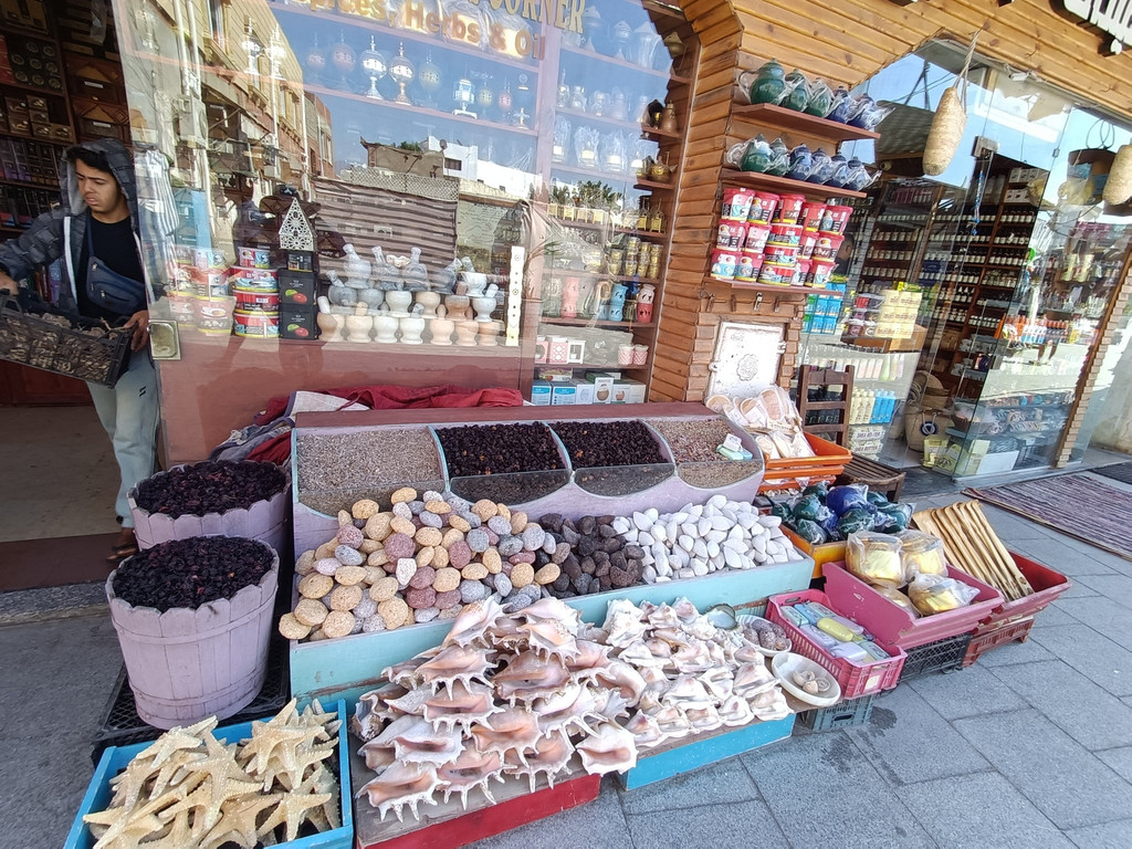D17(10.31)~同伴下午才下海,去清真寺拍照后,我请英文好的她带我去找浮潜。第一家开价600埃磅,找到第二家开价350,那就还到300。拿着水果看了会海,就到出发时间了。说实话,我因为5年不下海,确实有点慌,没一会就结束了。换完衣服后,跟我要钱,列出四项收费,350埃磅。我用翻译软件说:“如果要收费,你应该提前告知”。载我来的人说,我不给钱,就没有车送我。已经做好走回去的准备,他又妥协问想给多少,我只给50,就当没砍价喽!早早回来煲汤,抚慰自己受伤的心灵,又遭到了同伴的表扬。算是明白,那会在其它国家游历一个多月的两位,我带他们去吃中餐时的感受了。
