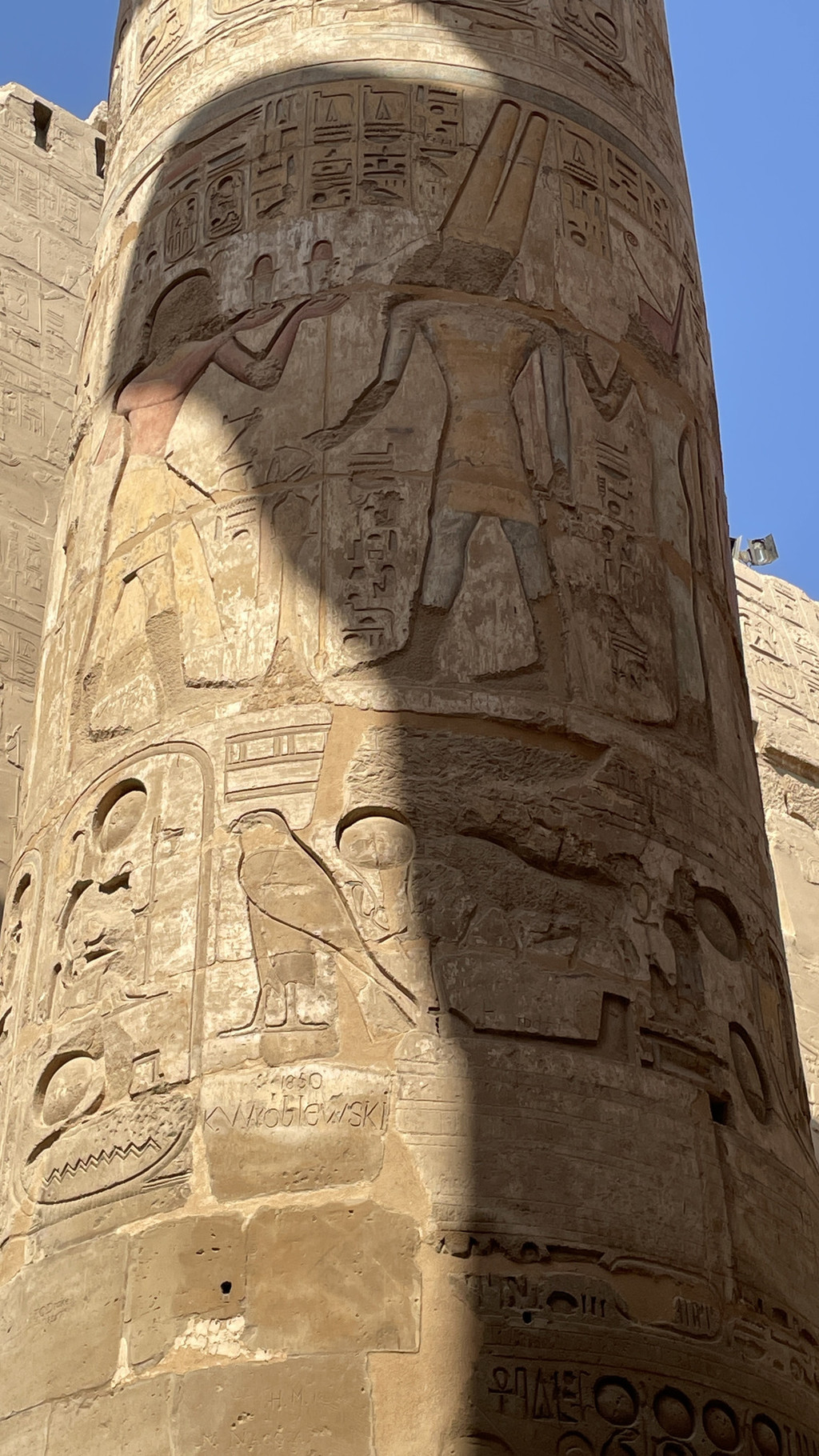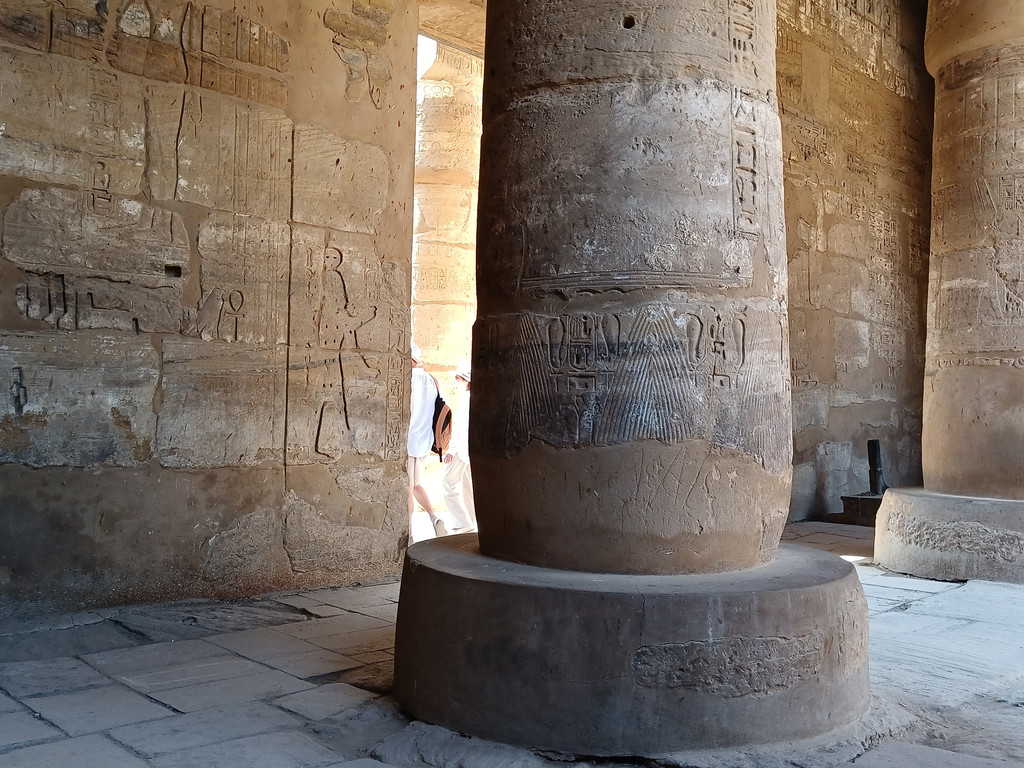 D25(11.8)~热气球归来,刚好吃早饭。碰到一位马来西亚华人和一个同胞,约着直接去卡纳克神庙。此神庙是美国华侨最推荐的,面积很大,而且雕刻相当精美,某些地方还遗留着当年的色彩痕迹。也有很多游客,拍照时尽量找没人时,做不到就P图。天气晴朗,也没有躲阴凉的地方。帅哥想喝冰可乐,开价100,就坚持坚持吧。回到驻地,发现是礼拜五,餐厅都不开门,只得吃了点早餐时打包的面包和小饼。然后准备看个博物馆,到了才知17点才开门,就去尼罗河帆船日落谈价钱。起初怎么也砍不下来,总是说300,最后碰到一个香港同胞,同意3人250磅。