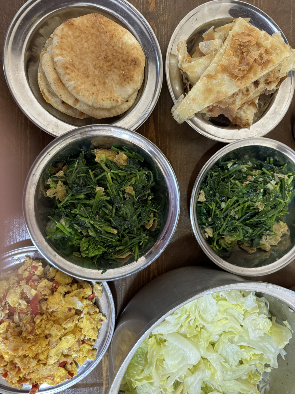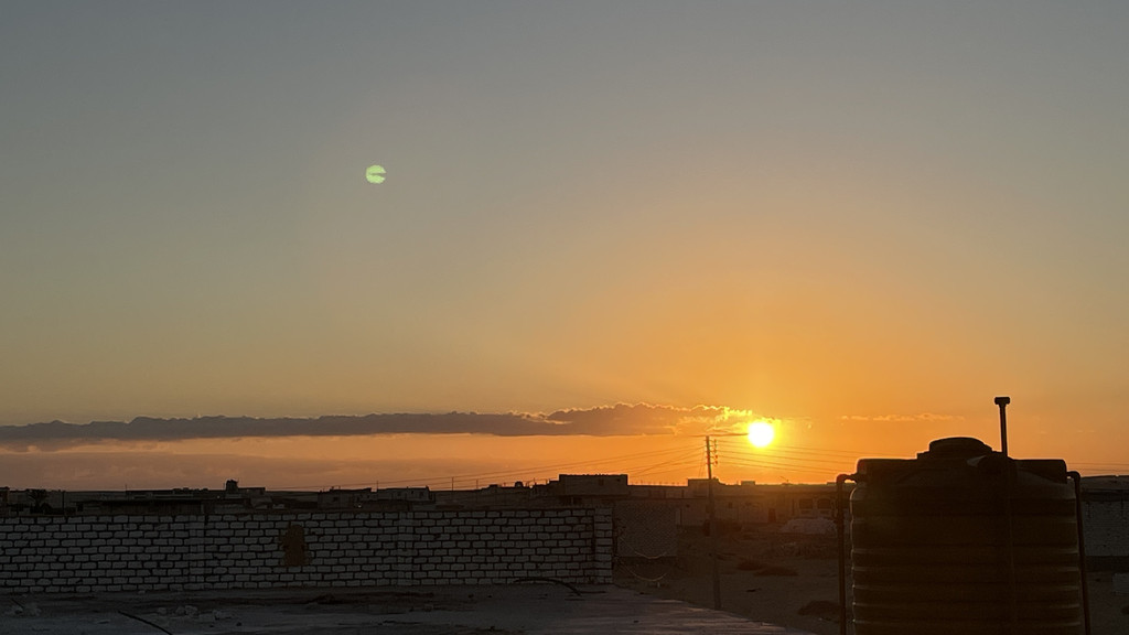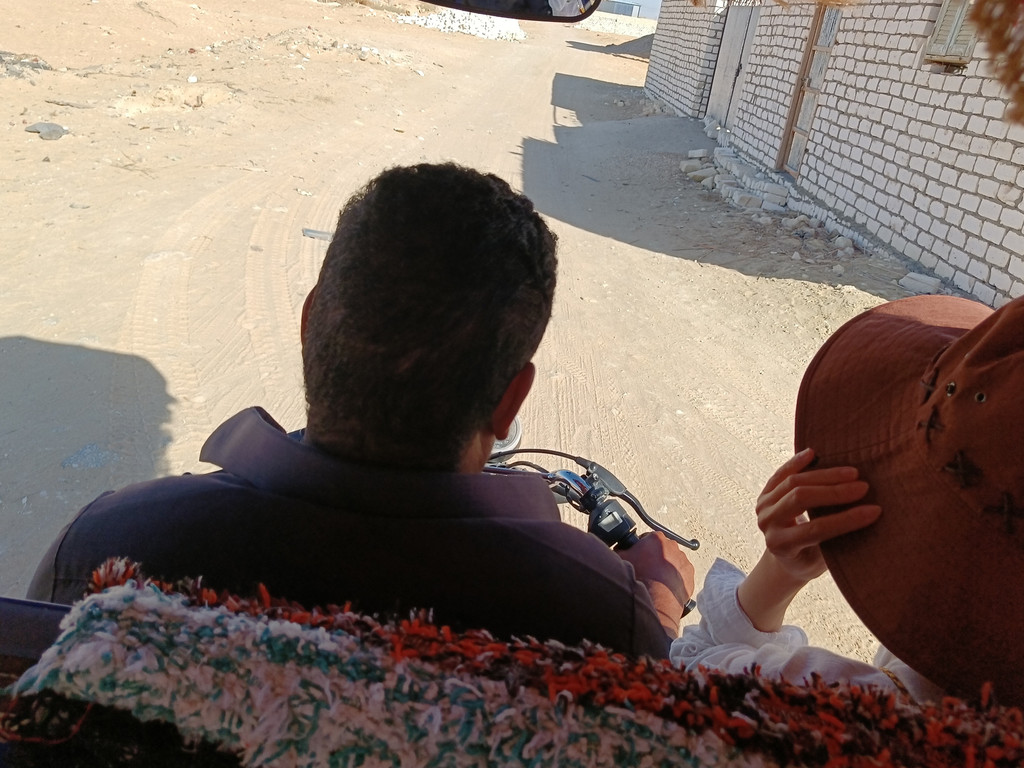 D6(10.20):马特鲁第二天。海之眼这里比较偏僻,都是还没建好的矮楼,出来后,给之前的司机打电话未接,没地址打不到车,就拿名片到处问人,问到埃及一家子,主母提议送我们去。车上聊了半天,她们也是来旅游的,同伴这个社牛又合影又聊天。回到驻地,睡了个长长的觉,起来干饭。好像图看这顿才是典型的埃餐。炉子烤的稍大些的饼,还蹭了杯甜茶喝。