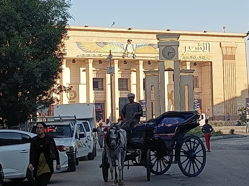 D23~24(11.6-7)~昨天刚回酒店,就发现流量已耗尽,想不到42G也这么不尽用,赶快到家乐福的营业厅去充。/今晨打车到gobus出发卢克索,也有几位中国同胞,8:30的车,到卢克索都两点多了。车下一帮人围着,本来想去Booking看好的民宿,拉客的说有便宜的在附近,最后砍价到500埃磅每晚,是共用浴室,在市中心这价算不错,离火车站和大巴站都不远,景点也近。入住后遇到一位美国华侨,和中国同胞,约着去吃群里推荐的中餐,“王朝”餐厅,虽然是埃及人开的,味道挺不错。结账1000磅,核每人36元人民币。吃完饭坐马车回,说好50,下车后给100都不依不饶,说是50每人,不理果断走,卢克索果然名不虚传。然后在顶楼喝茶聊天,女同伴没看过的剧集和综艺,华侨居然都看过,《中餐厅》和《玫瑰的故事》,越聊越投机,让他下载微信,好把我看过的剧集名字分享。他们搭晚上的夜巴去开罗,下次有缘再聚。早点休息,准备明天的热气球��� 啦!