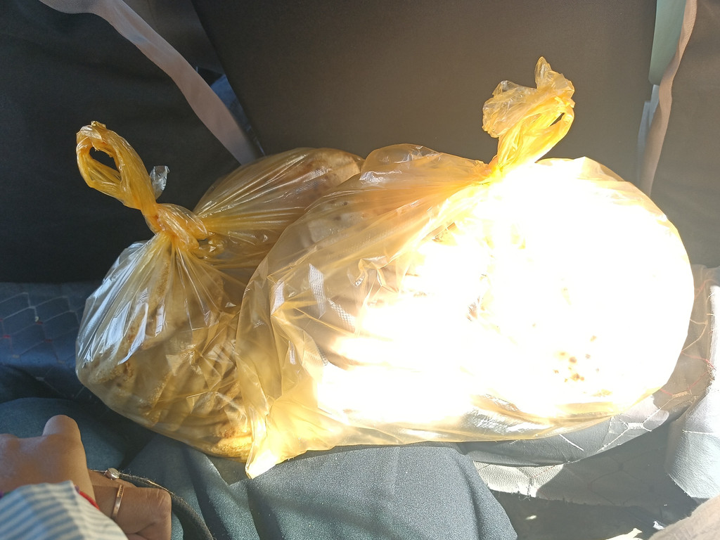 回程的小巴,(4磅一位,对我们不找零)看到这里常吃的小饼在日光照耀,拍照,小姐姐就要拿给我尝,忙说早上刚吃过。