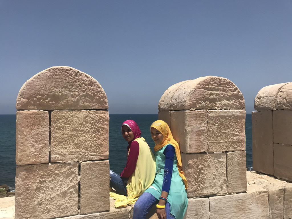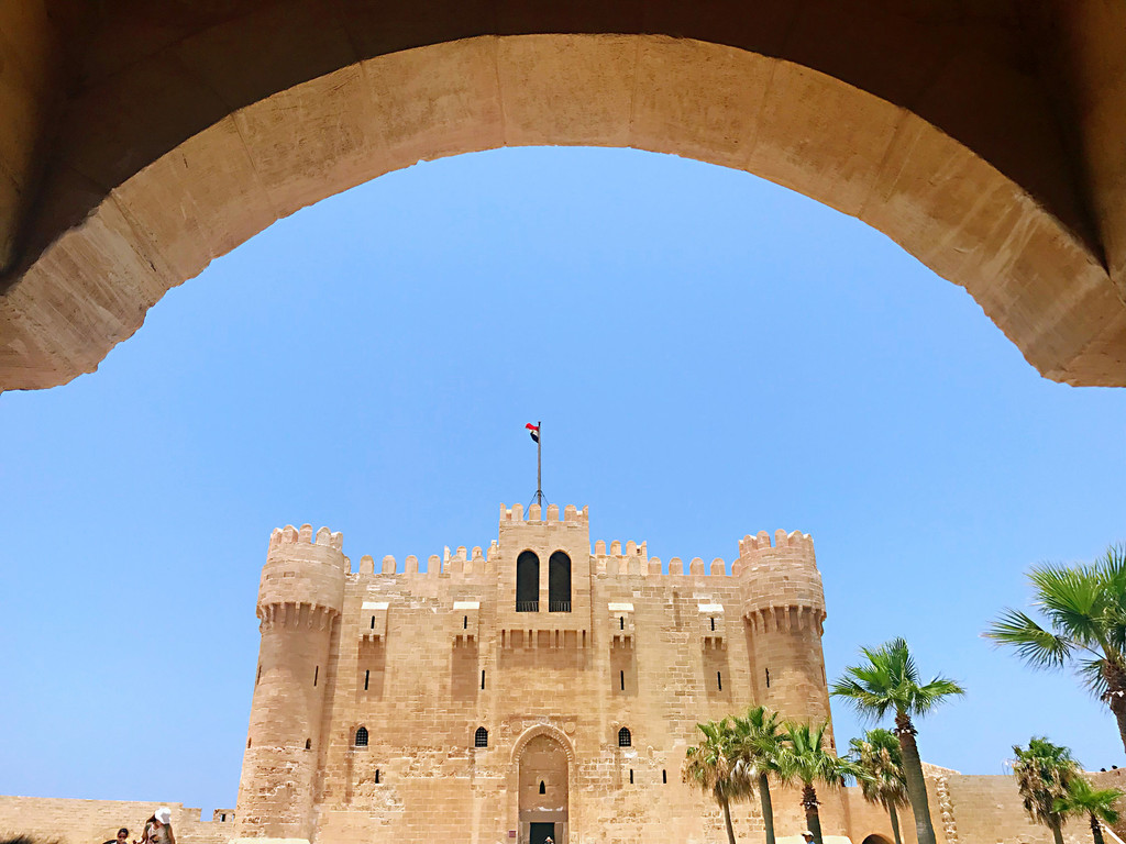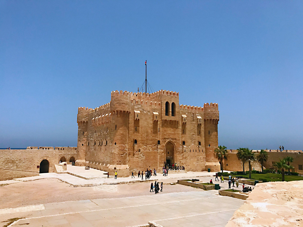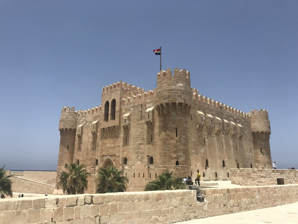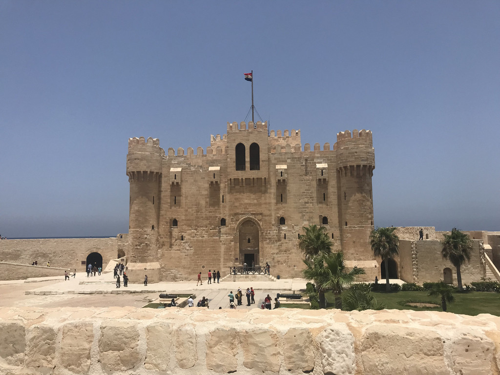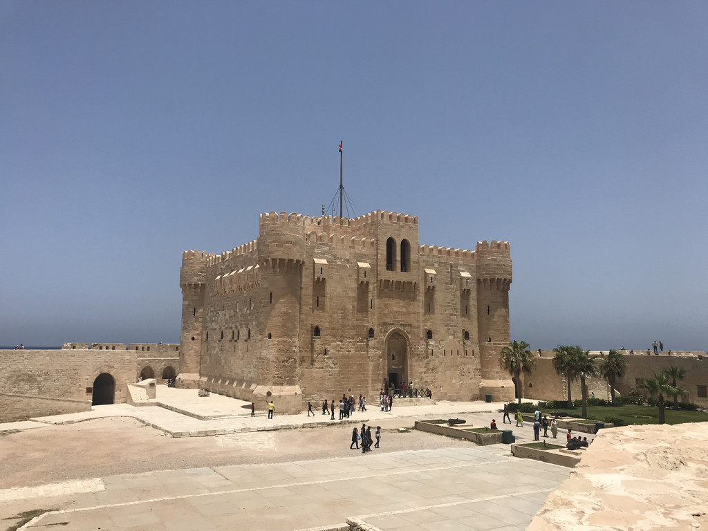 抵达亚历山大之后,司机直接就把车开到了地中海之滨,下车后的第一眼我就被地中海惊艳到,海边的礁石上长满了绿藻,翠绿、湛蓝交相辉映,煞是美丽。漫步在地中海之滨,海风习习,凉爽舒适。魁特贝古堡就矗立在地中海之滨,这里曾经是亚历山大灯塔的遗址所在地,历史上亚历山大灯塔曾被誉为世界第七大奇迹,亚历山大灯塔始建于公元前278年,塔高约135米,其塔顶的火炬从建成开始昼夜不停燃烧了近千年。后来亚历山大灯塔被毁于两次大地震,再后来被毁灯塔的石料被用于建造魁特贝古堡,魁特贝古堡其实是一座军事要塞,用来抵御来自于海上的侵略者。如今的魁特贝古堡依然宏伟壮观,是亚历山大最著名的景点之一,而当我们几张东方面孔现身古堡时,我们立刻成为了最受欢迎的一群人,引来众多的非洲人民争相与我们合影留念。