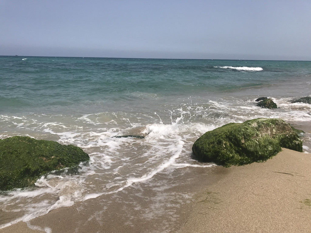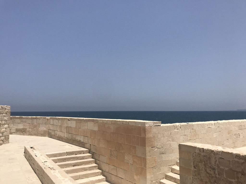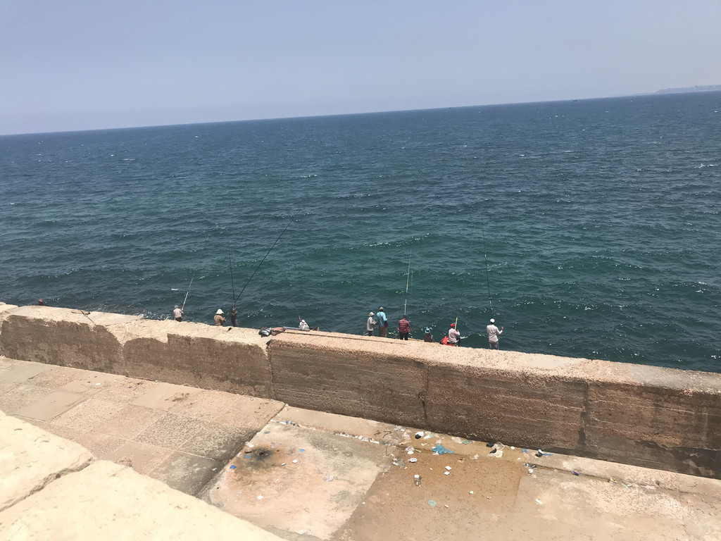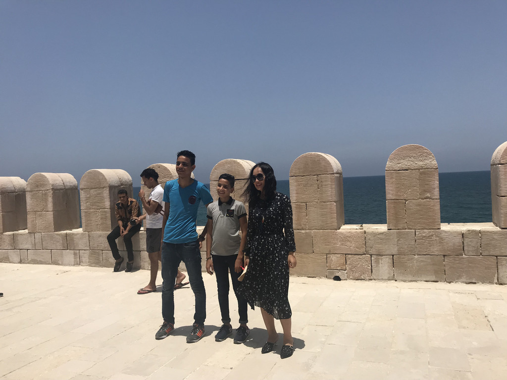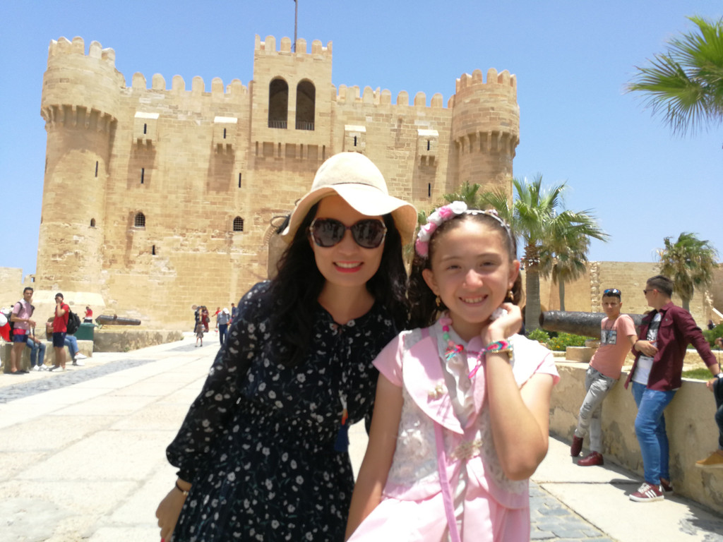 抵达亚历山大之后,司机直接就把车开到了地中海之滨,下车后的第一眼我就被地中海惊艳到,海边的礁石上长满了绿藻,翠绿、湛蓝交相辉映,煞是美丽。漫步在地中海之滨,海风习习,凉爽舒适。魁特贝古堡就矗立在地中海之滨,这里曾经是亚历山大灯塔的遗址所在地,历史上亚历山大灯塔曾被誉为世界第七大奇迹,亚历山大灯塔始建于公元前278年,塔高约135米,其塔顶的火炬从建成开始昼夜不停燃烧了近千年。后来亚历山大灯塔被毁于两次大地震,再后来被毁灯塔的石料被用于建造魁特贝古堡,魁特贝古堡其实是一座军事要塞,用来抵御来自于海上的侵略者。如今的魁特贝古堡依然宏伟壮观,是亚历山大最著名的景点之一,而当我们几张东方面孔现身古堡时,我们立刻成为了最受欢迎的一群人,引来众多的非洲人民争相与我们合影留念。