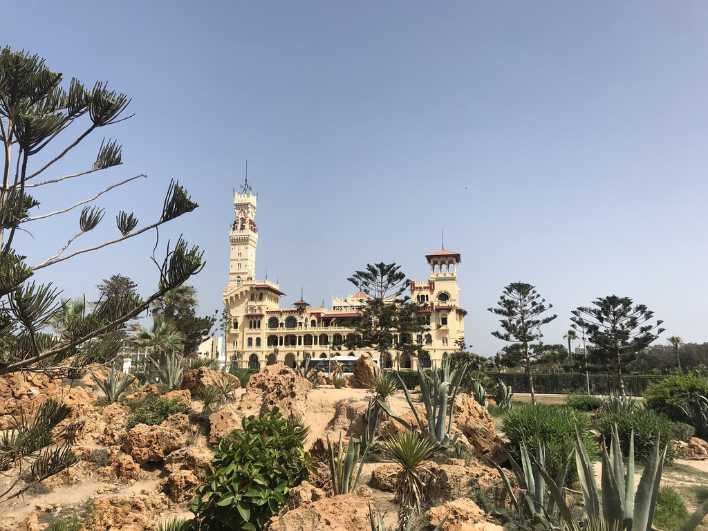 地中海的海鲜给我留下了深刻的印记,因为地中海的一根鱼刺被我一直带回了中国,直到回国后的第三天才去到医院从口腔里取出来。其实滨海的那家海鲜餐厅不错,落座之后魁特贝古堡和地中海尽收眼底,海鲜生猛、价格便宜,唯一不足的是烹饪方式略显单一。吃饱喝足之后我们驱车来到了蒙塔扎王宫,蒙塔扎王宫是亚历山大城最大的公园,茂密的林木和奇花异草簇拥着一座佛罗伦萨式的建筑物,王宫的左侧面向大海,与近处的海上公园遥相呼应,从陆上通往海上公园的唯一通道是一座华灯点缀的红色石桥,园内有修剪讲究的花木和通幽的曲径,无不透着皇家的气息。据说埃及现任总统塞西偶尔还会来王宫居住,不过王宫的戒备并不森严,也完全没有那种“卧榻之侧,岂容他人酣睡”的紧张,游人可以自由地游览、拍照。