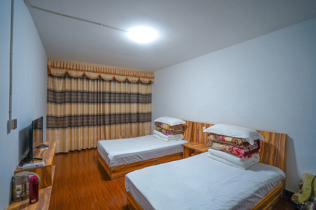 做攻略时看了一下绒布寺的住宿,以那个为标准,巴松村的住宿还是比想象中的好的。四人间的床位,正好我们一车人,张哥在门口的小隔间。没有自来水,寝具的卫生状态堪忧,没有洗漱间,没有能放心上的厕所,有烧热水的水壶,有整夜不断电的插头,最重要的是有能抻腿的行军床,满足了。