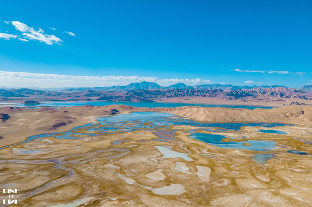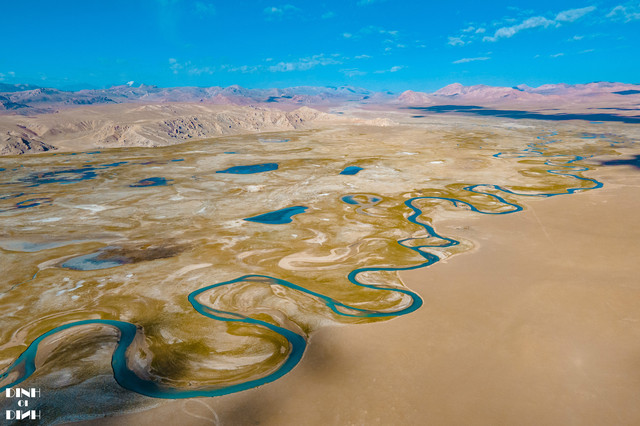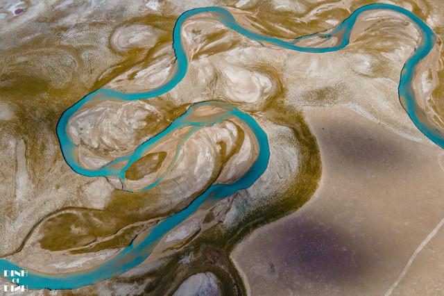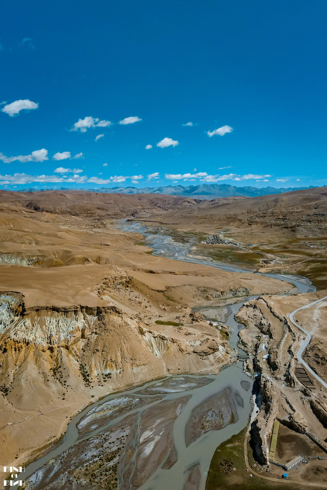 317国道的路上,看到有着一片像戈壁一样,还有各种弯弯的小溪,申请停了15分钟的车,飞了段航拍。