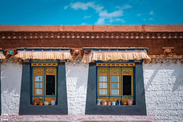 起风了,大昭寺外的窗户上随风飘舞的帘子,似乎在邀请你进去。