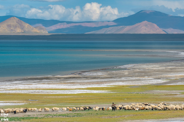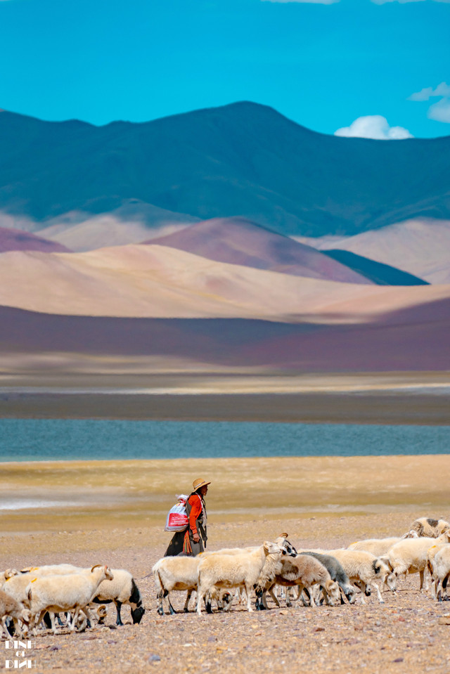 虽然不是野生动物,但是藏区的羊也是一道靓丽的风景线啊,在湖边遇到赶羊回家的牧羊人