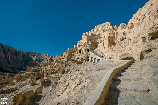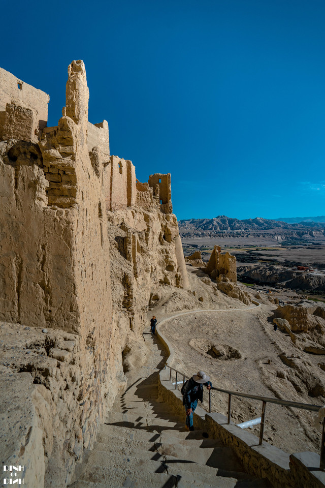 山顶的绝壁上是王宫,包括聚会议事的大殿、进行佛事活动的经堂、坛城、神殿和王室成员居住的冬宫、夏宫等。从山顶保留的建筑看来,山顶的建筑就比山下的大气很多。山顶还有一个往下的 通道 ,据说是王宫藏粮食的仓库。