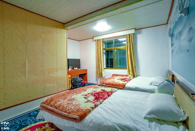 热水是统一烧好的,装进暖水瓶里拎到房间,房间有蹲厕和热水,可以洗澡。房间有电暖器,可以说算是很好的待遇了。居然还有电器电视机,可是我们根本没时间看,大晚上跑去拍星星了。宾馆边上的牛肉汤锅超级好吃。
