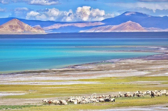 9月的 西藏 ,白天的太阳晒的人热的仿佛夏天,但当车绕上羊湖的山头,风却让你感受冬日的寒冷。一冷一热中,我们抵达了 西藏 三大圣湖之一的羊卓雍措,美名为羊湖。