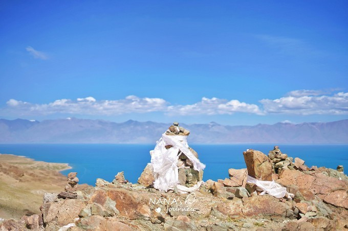圣湖的观景台,也有不少人在这里堆起了玛尼堆,向圣湖说出自己的心愿。那一抹碧蓝,早已刻入了我们的脑海中。