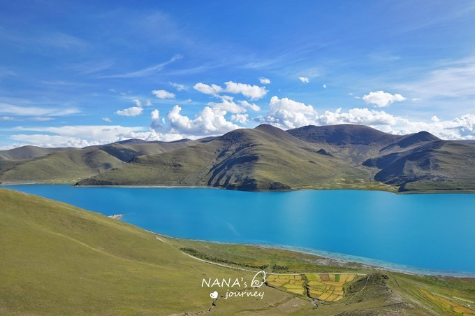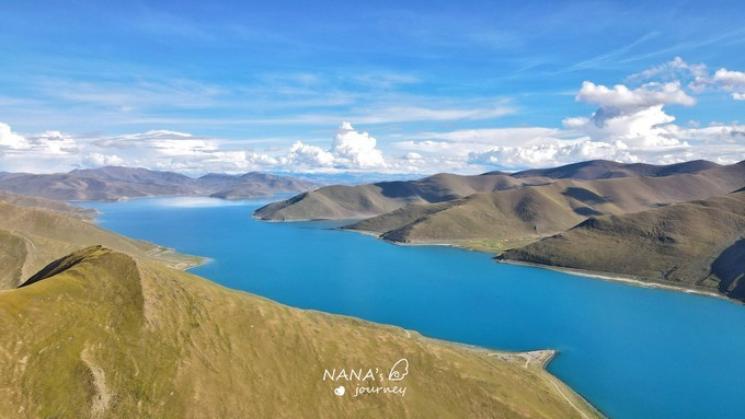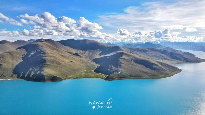 曾经的我,刚脱离工作的困苦获得自由,初见的场景和其他人一样,兴奋而感慨。而如今的我,沉稳的拿出航拍,提着相机,便走下观景台拍摄起来,渴望从更高的角度,欣赏羊湖的美。