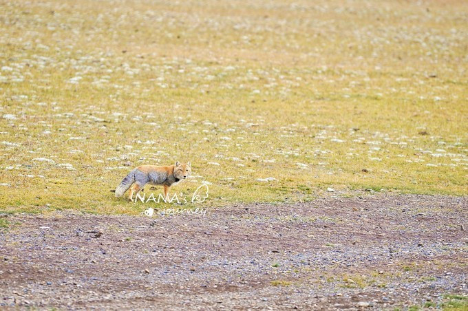 荒原上土拨鼠也很多,不过一般当我们发现停车的时候就钻洞里去了。除了藏原羚,倒是发现一直肥硕的狐狸,呆滞的看着我们开车而过,请问,你们都是要如此卖萌的么~