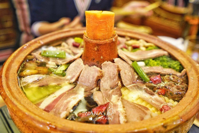 藏式火锅来了,这可都是硬货,牦牛肉直接上,汤很浓郁,下面是放着各种蔬菜,还可以继续加各种肉,看大家的需求,但实际小锅量也非常的大,我们五个人都干不完。