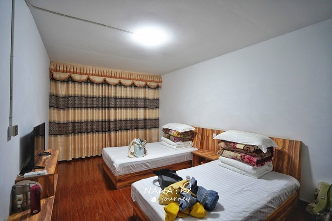 没想到 阿里 的住宿看上去不起眼,但住的倒是挺舒服的。最开始的房间里全是苍蝇,我们受不了,换了一间,住的挺舒服,洗澡水也足。
