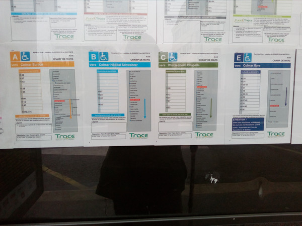 今去colmar北面的小镇RIQUEWIHR.AUTOCARS ROYER 68 公交公司 www.vialsace.eu ,班车#106出发站就在火车站前 。前台服务很好,特打印了时刻表,站台上也有可是招牌和字很小。时间还早,先遛遛车站