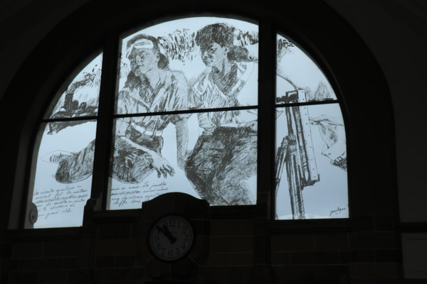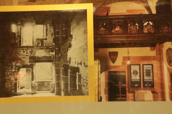 墙壁挂图介绍了修复故事。载二张修复对比图。。。修旧如旧,也有工匠啊。