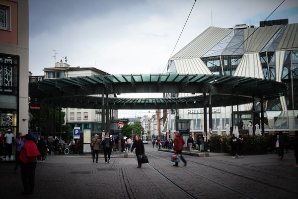 取了行李上ALSACE州府strasbourg。州府的老火车站改建后加罩了时尚的大玻璃。