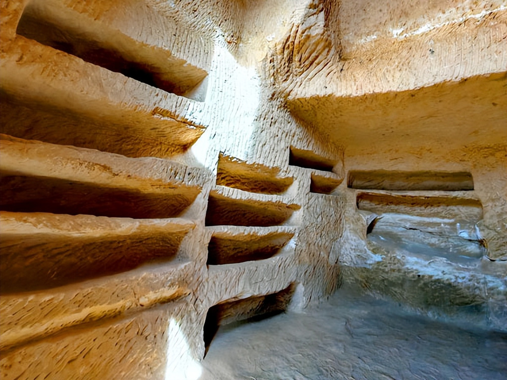 走进黑格拉遗址开放的26号墓穴中,人们能清楚地观赏到这里面的构造。宽敞的空间里的墙壁上,是一条条开采出来的石道,这都是当年为安放尸体所用。墓穴高处还有通风的石窗,这些建筑构造无不体现了当年设计者的聪慧。