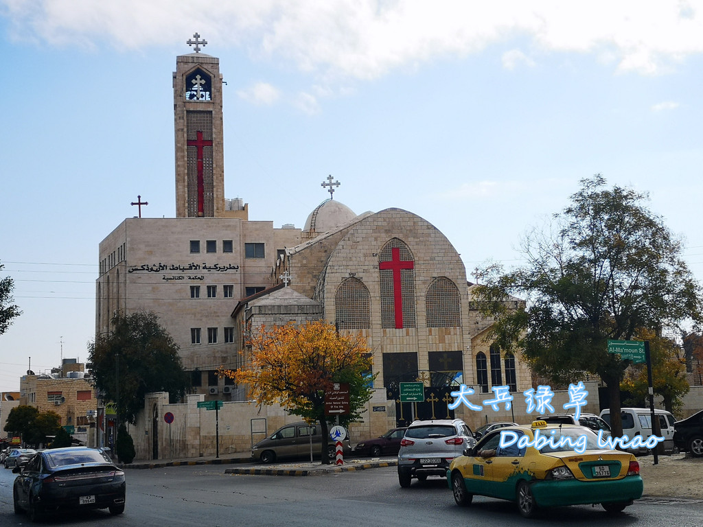 阿卜杜拉国王清真寺的对面有一座基督教堂,说明这里多种宗教还是能和谐相处的。
