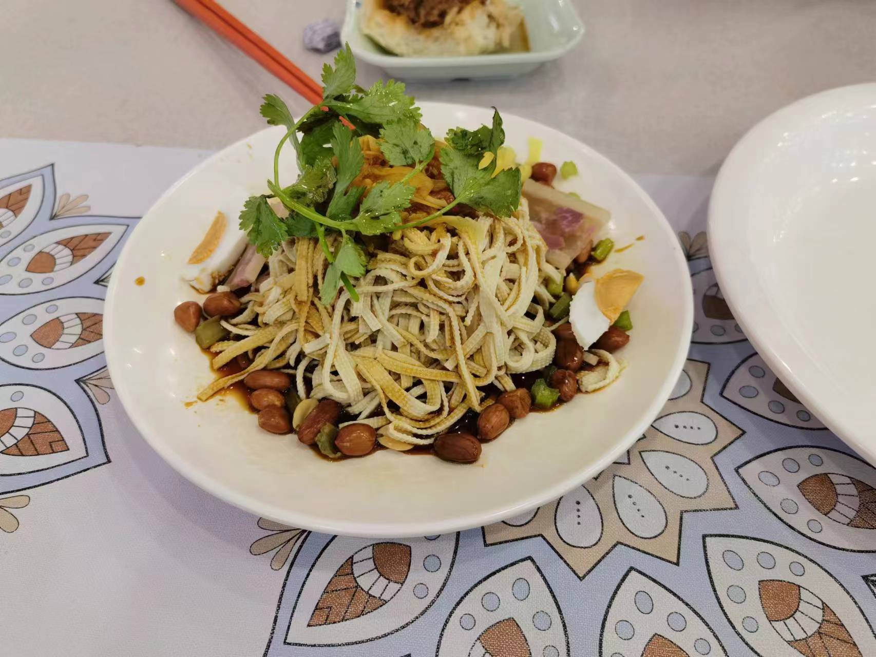 2024/2/12 早饭 AM9:10-AM10:00 南京 上午自然睡醒后去楼下东台鱼汤面吃早饭,包子很大一个,凉拌三丝好吃,阳春面一般。大于10点左右出发去查济。