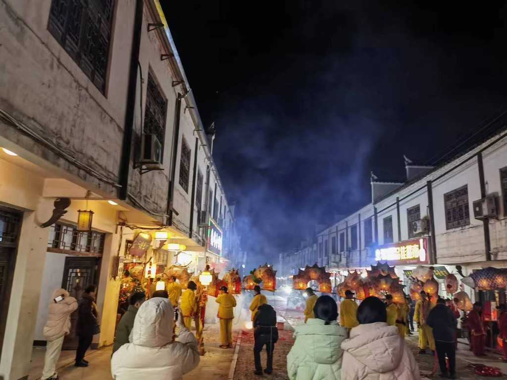 舞龙 PM20:30-PM23:00 村里习俗,大年初二接龙一直到持续到初五,今年正好又是龙年,从初二晚上5点多开始,从山脚下沿路挨家接龙,我们到的时候是初三,晚上家家放鞭炮和烟火,整个村里12点之前都是极热闹的。