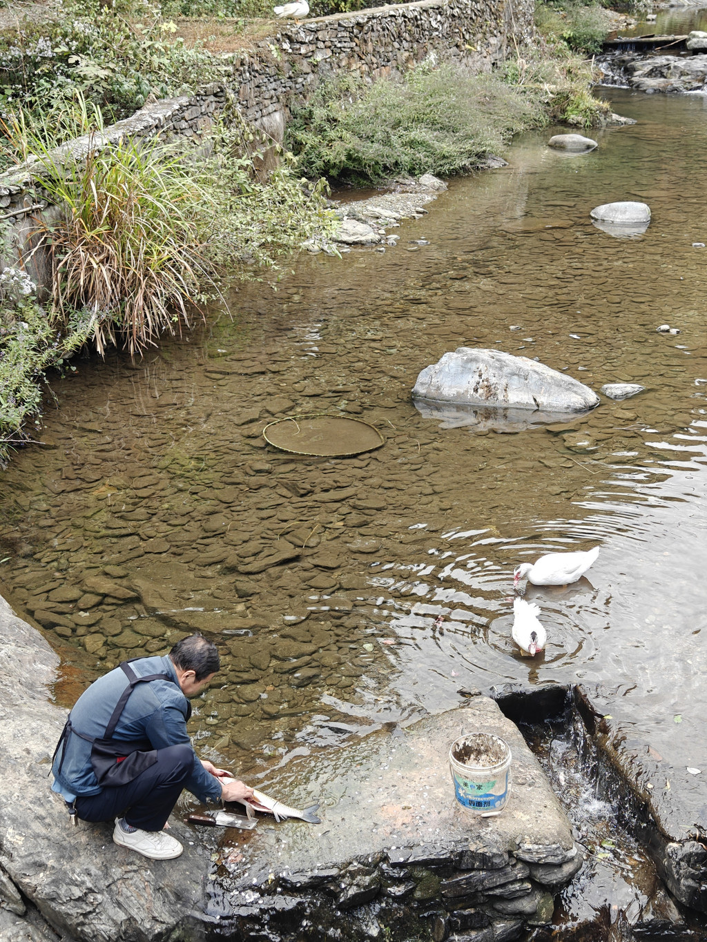 老板在溪边杀鱼,这鸭子是先吃了一轮了,下回该吃只鸭子了
