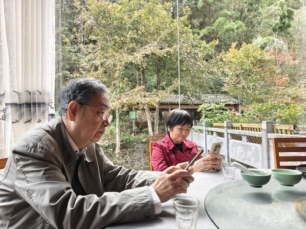 路边坐一坐,那边两位女团友在购物,喝茶,买了香椿香菇