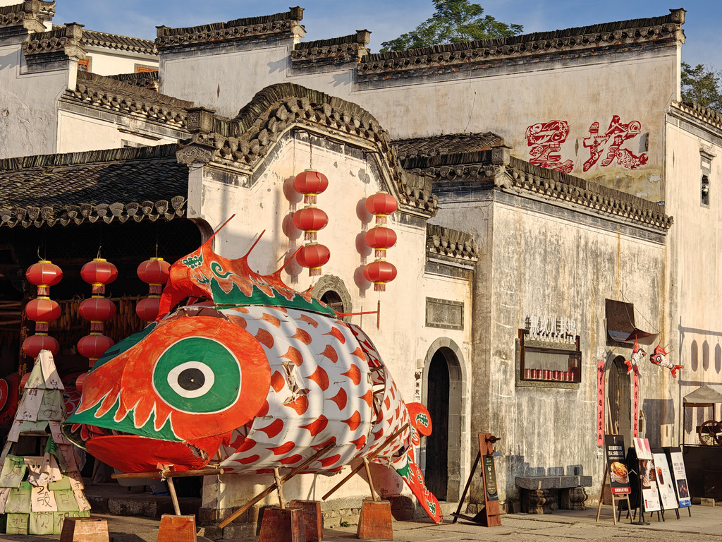 回到呈坎,继续去看鱼灯,发现没有昨天周六的人多,也没有那么热闹了,气氛还是很重要的。
