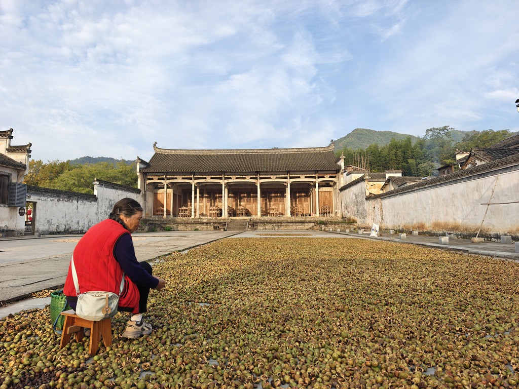 老太太在晒油茶子,说今年便宜了,65一斤,后来去宏村的一家饭店问,老板说跟当地人收货价是30多。老太太还问要不要导游呀,早上在村里逛会碰到一些大爷大姨的,都问20元导游去不去,如果不太熟悉路况的,可以找一下。