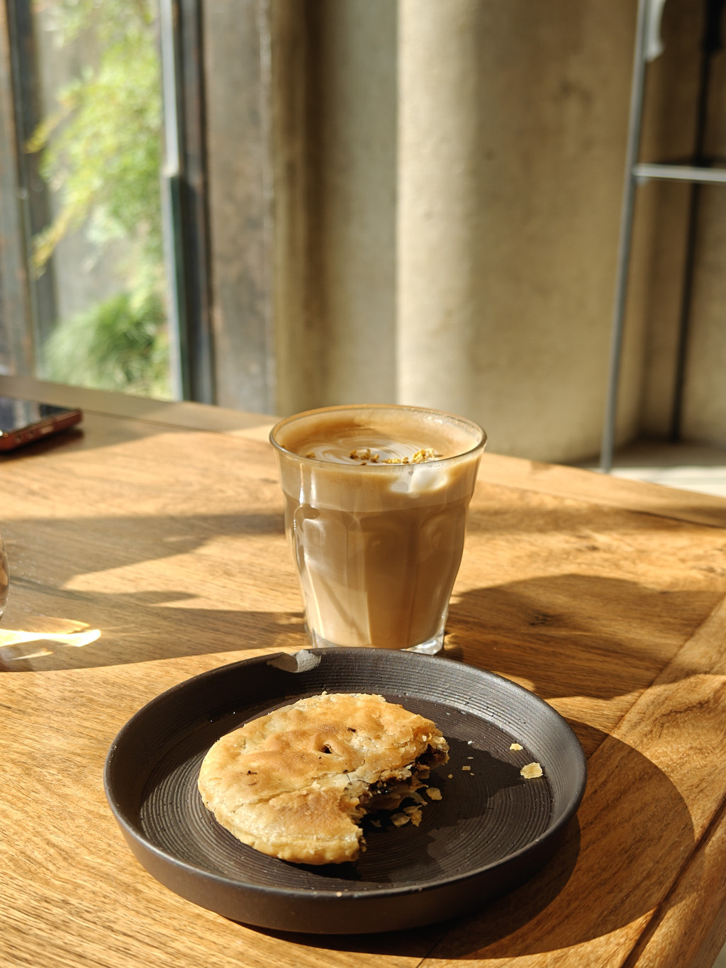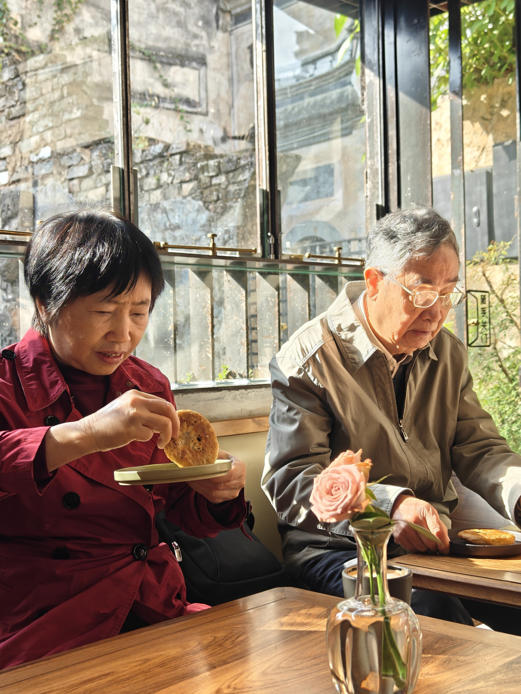 大爷大娘在咖啡店里就着澳白吃黄山烧饼,多洋气