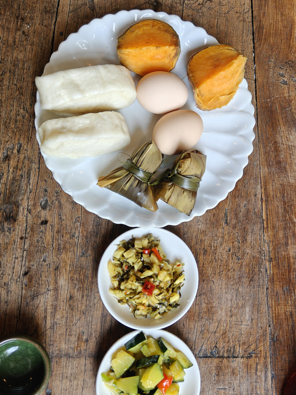 在村里溜达一下,村民习惯捧着碗蹲在自家门口吃早餐