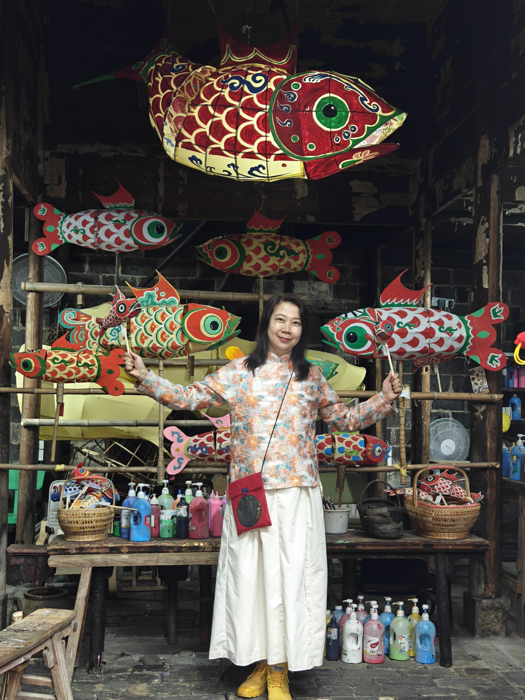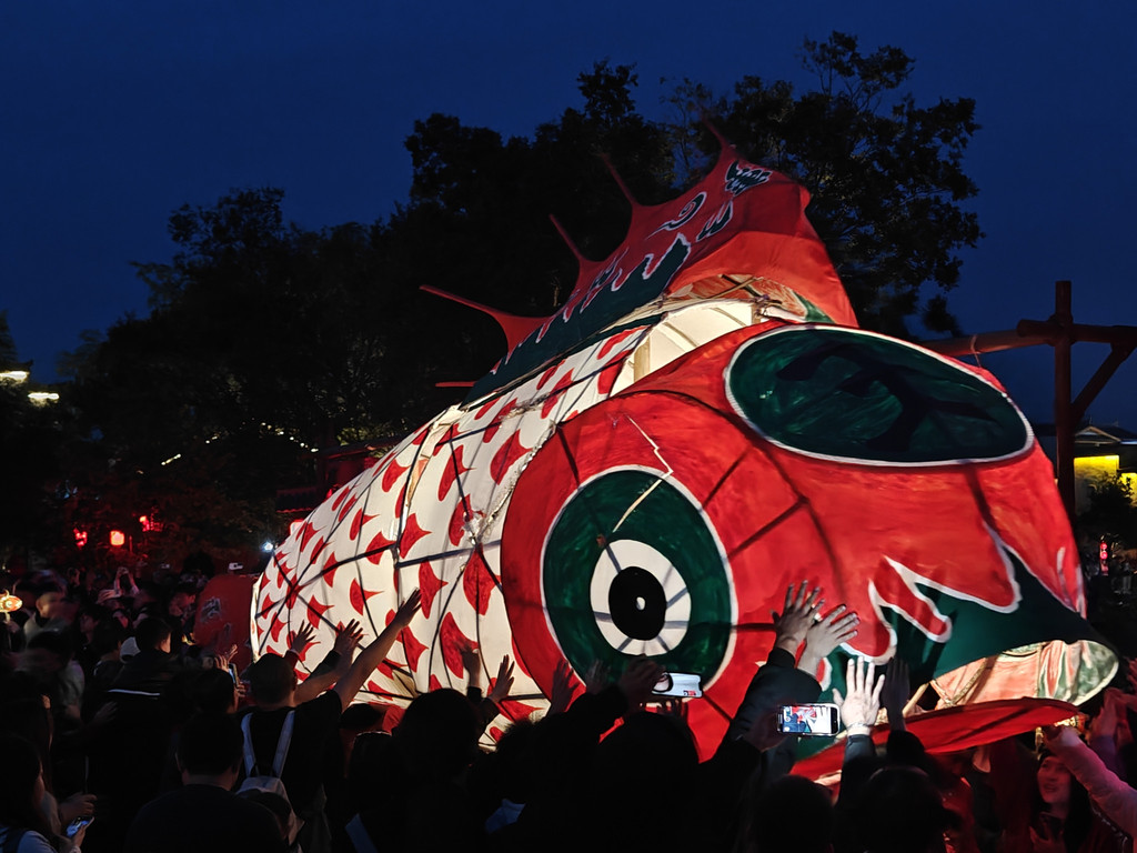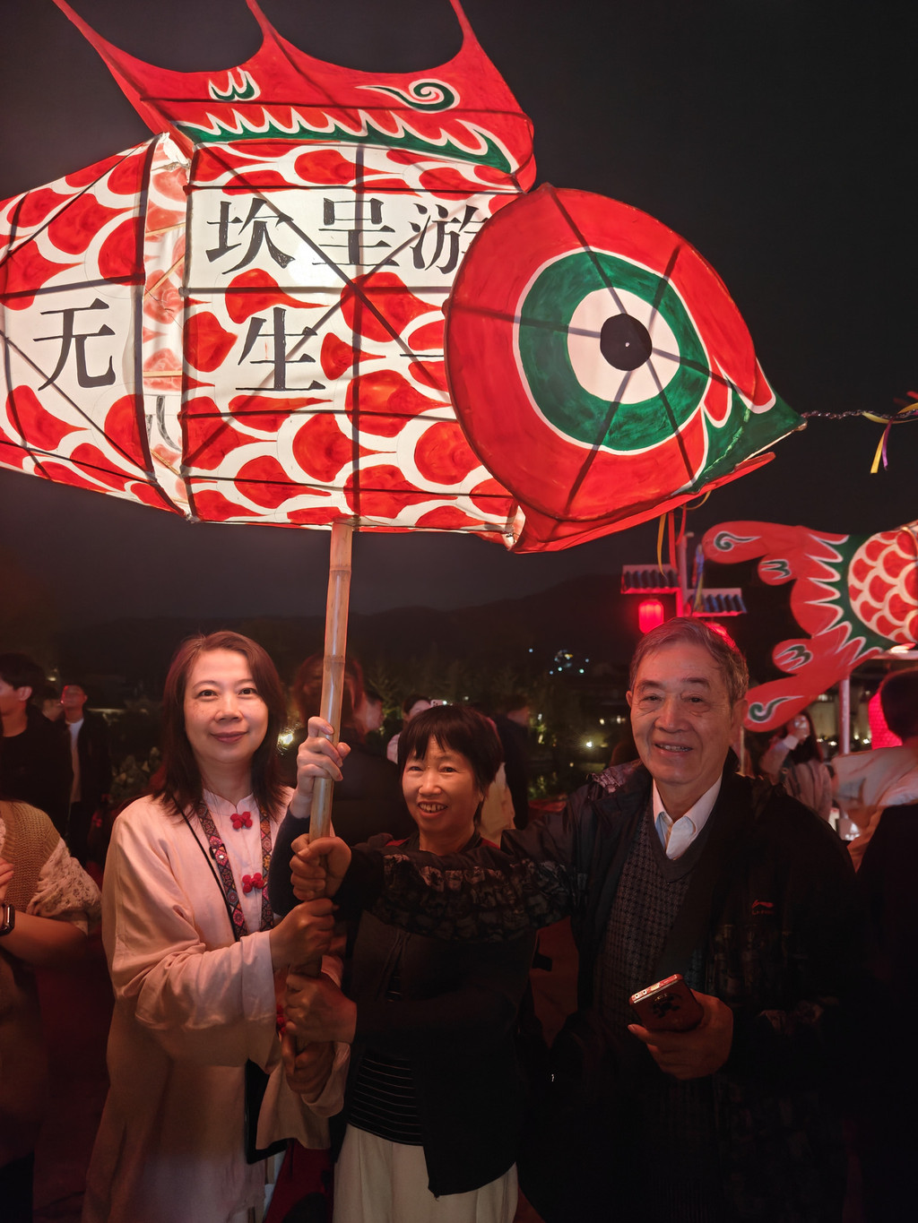 巡游后,大家都抢着找鱼灯拍照,这些鱼灯好像是旅拍店的