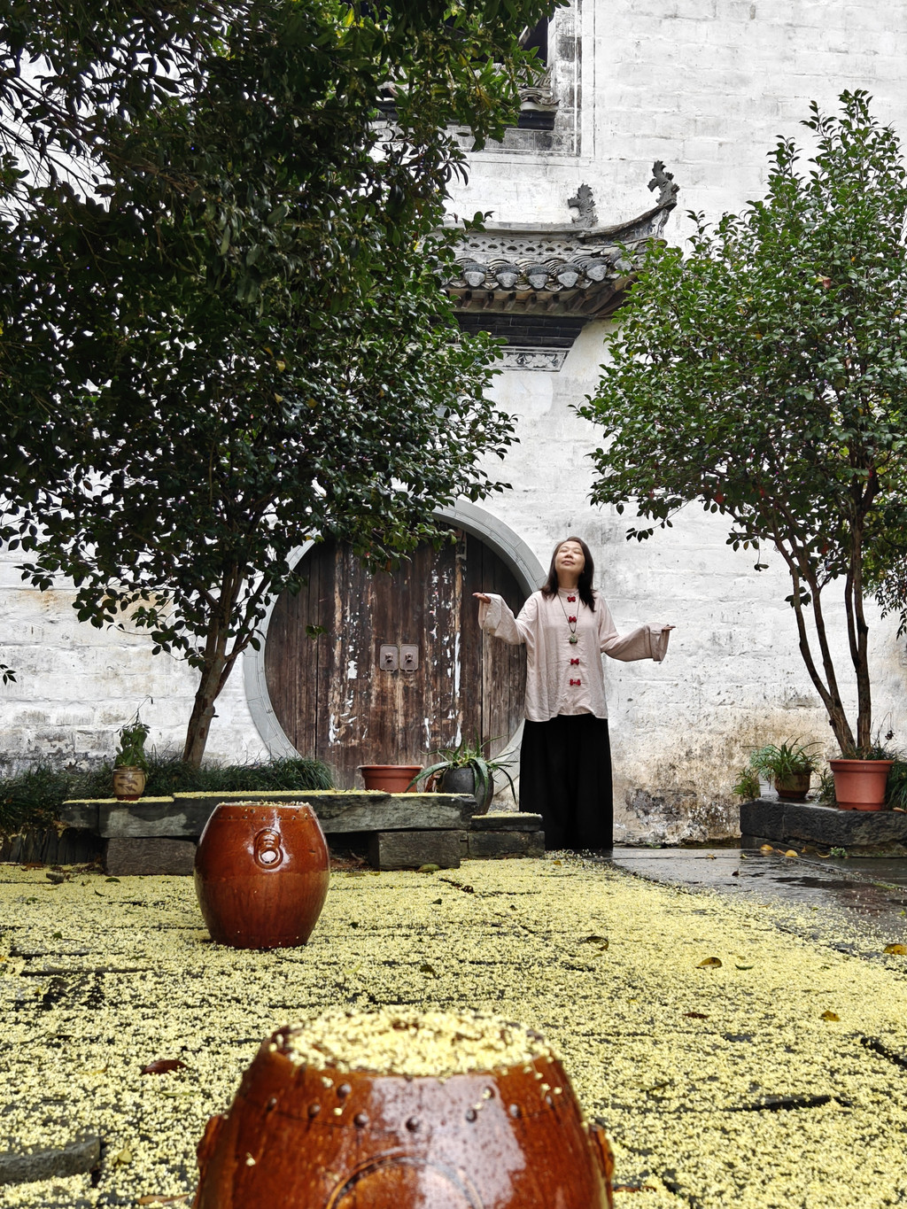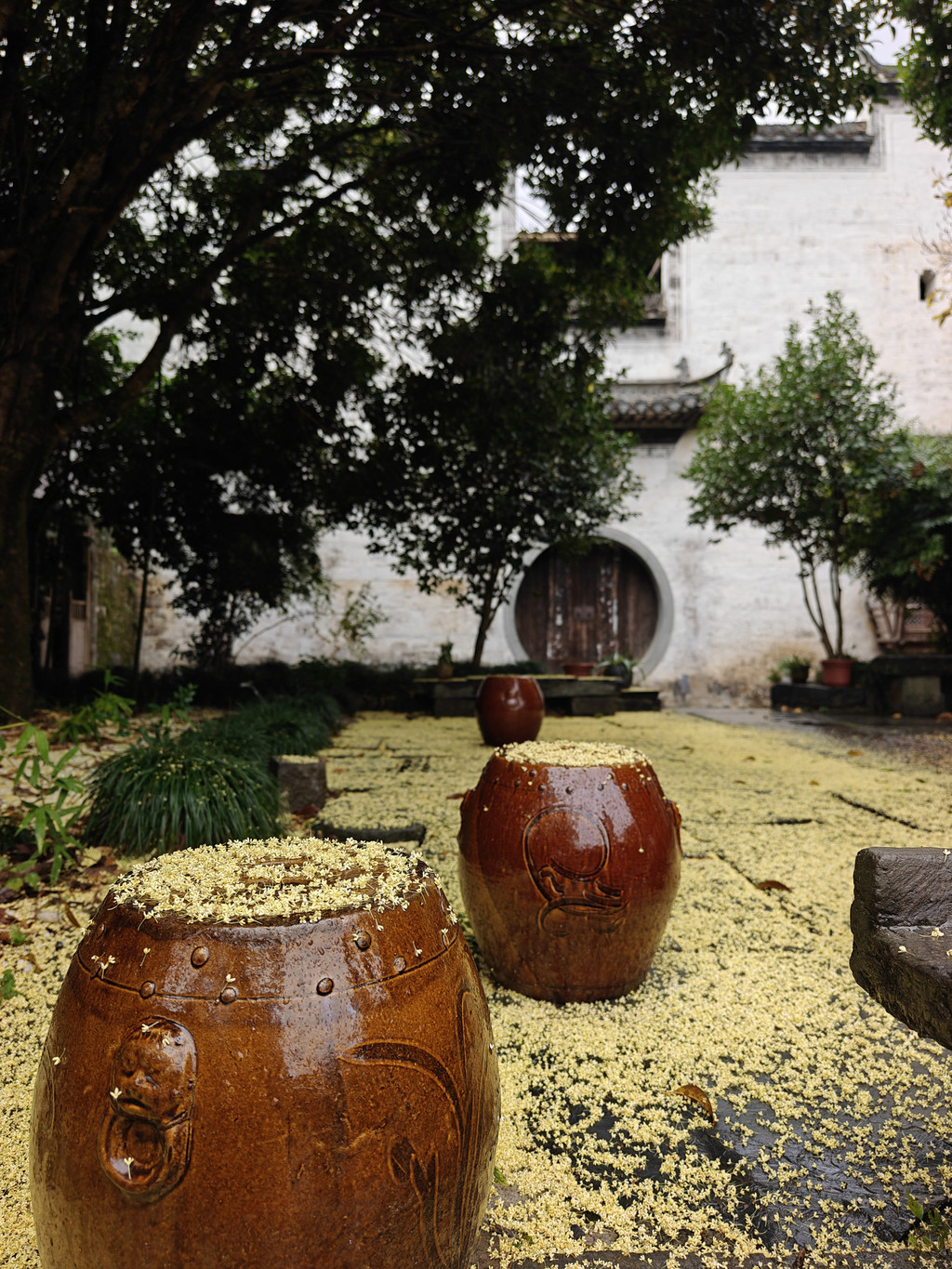 之前有村民来将桂花都打扫走了,昨晚一夜小雨,今晨又是遍地金黄