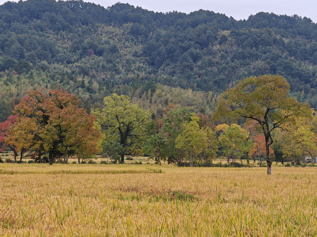 稻田里的这些树按往年应该是变色了,现在啥也没有