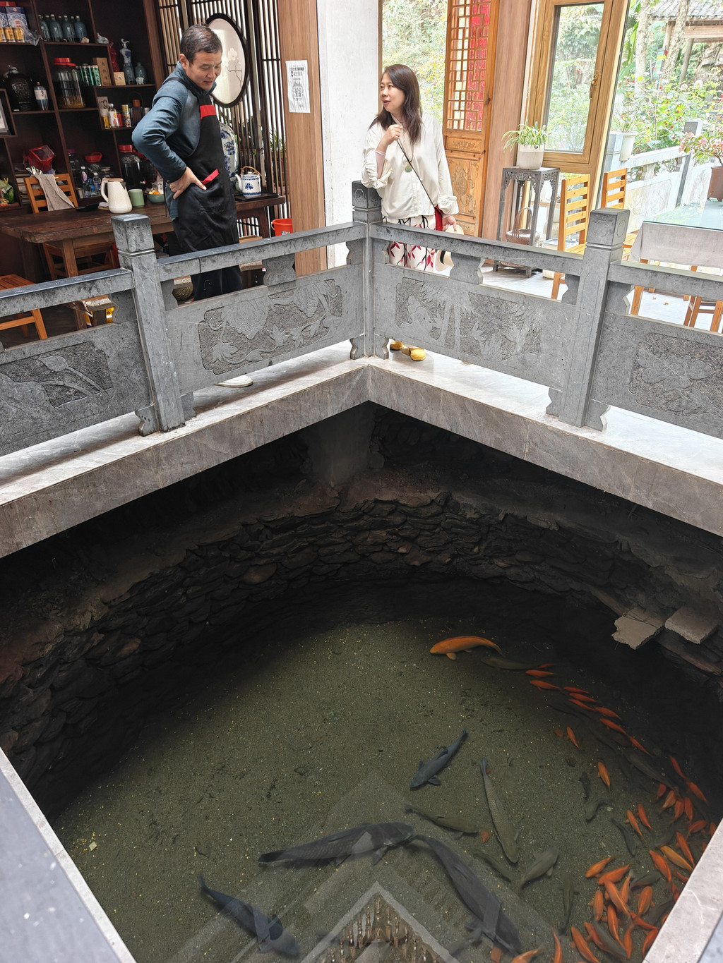 这家店在屋里有个大鱼池,养的最大一条有20多斤,说当年起房子的时候不舍得这鱼池,直接在上面加盖房子,有见地