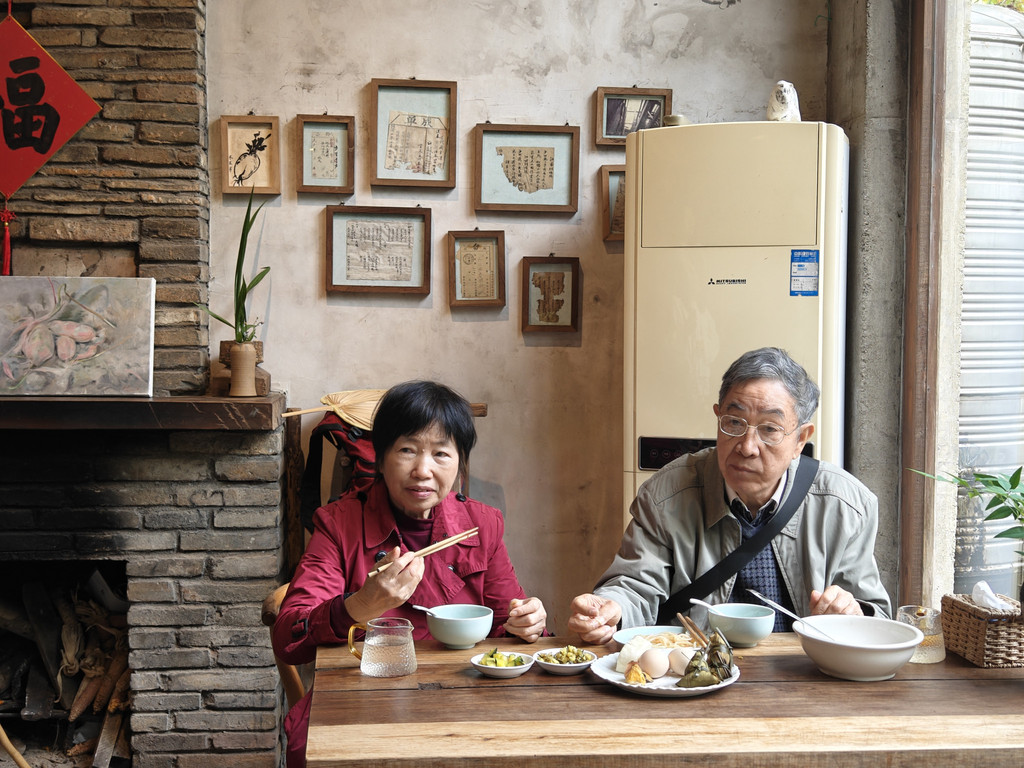 民宿不负责餐食,老太太在忙乎老两口的晚餐。