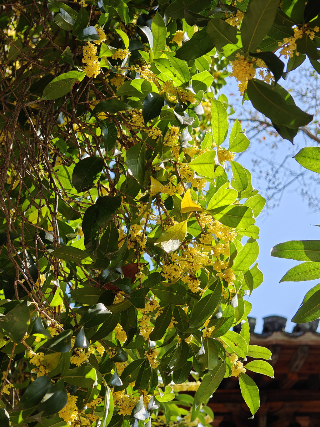 400年的桂花,树冠很大,分开了三个叉,遮住了半个院子