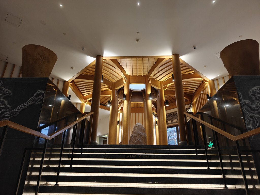 当时没有查看资料,这宝纶阁最值钱是这4根柱子,金丝楠木的,只拍到这一张照片有
