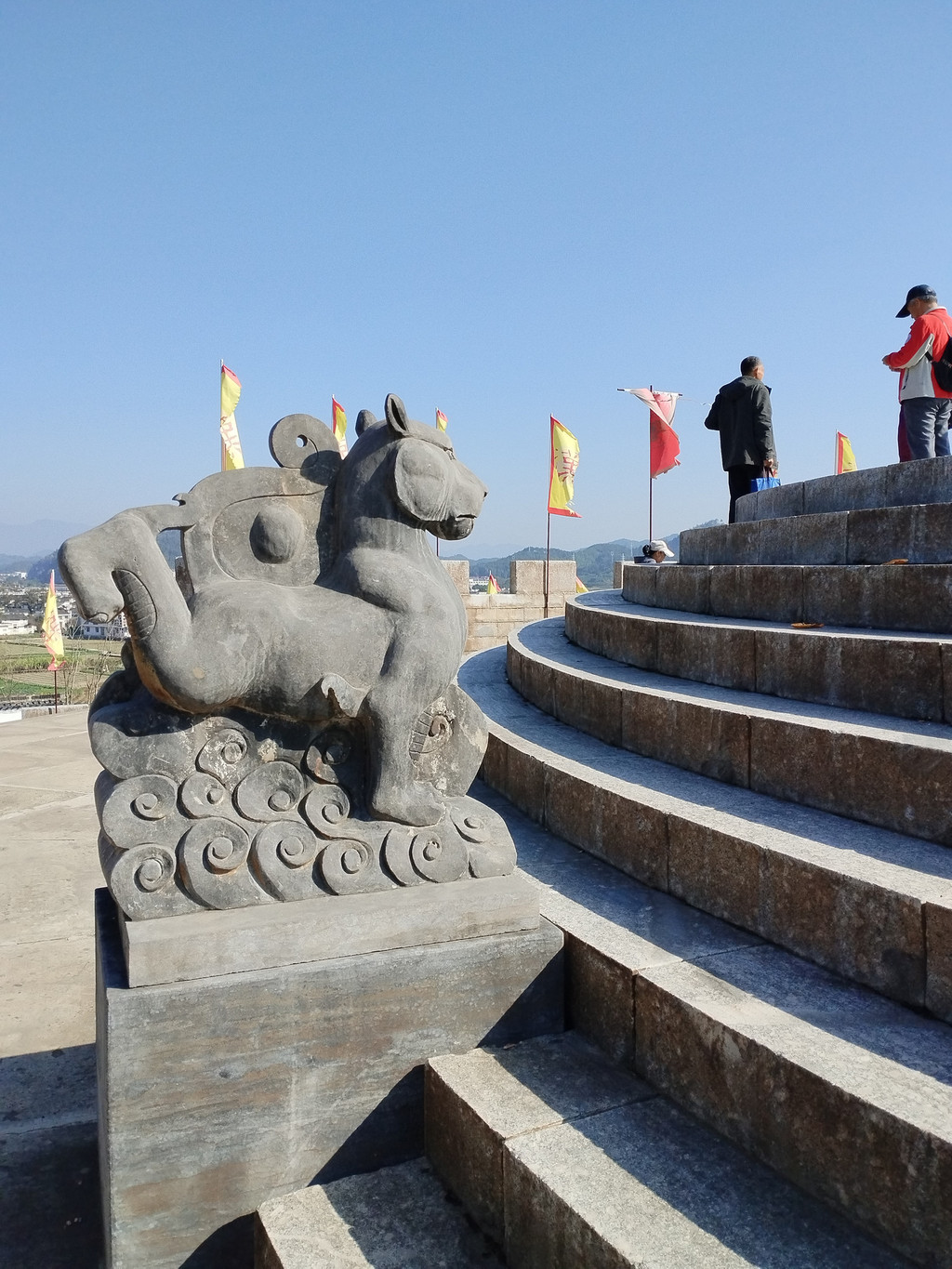 阿李从天地坛西面墙上的台阶走上去,发现坛上部还有圆形部分,而且这圆形是逐步缩小的。天地坛上面,东南西北四方立有四尊塑像,是我们熟悉的“左青龙、右白虎、前朱雀、后玄武”。阿李突然明白了“天地坛”的含义了:坛的下部是方的,代表地;坛的上部是圆的,代表天。而“左青龙、右白虎、前朱雀、后玄武”是中国传统文化中最具代表性的四象(四灵)。