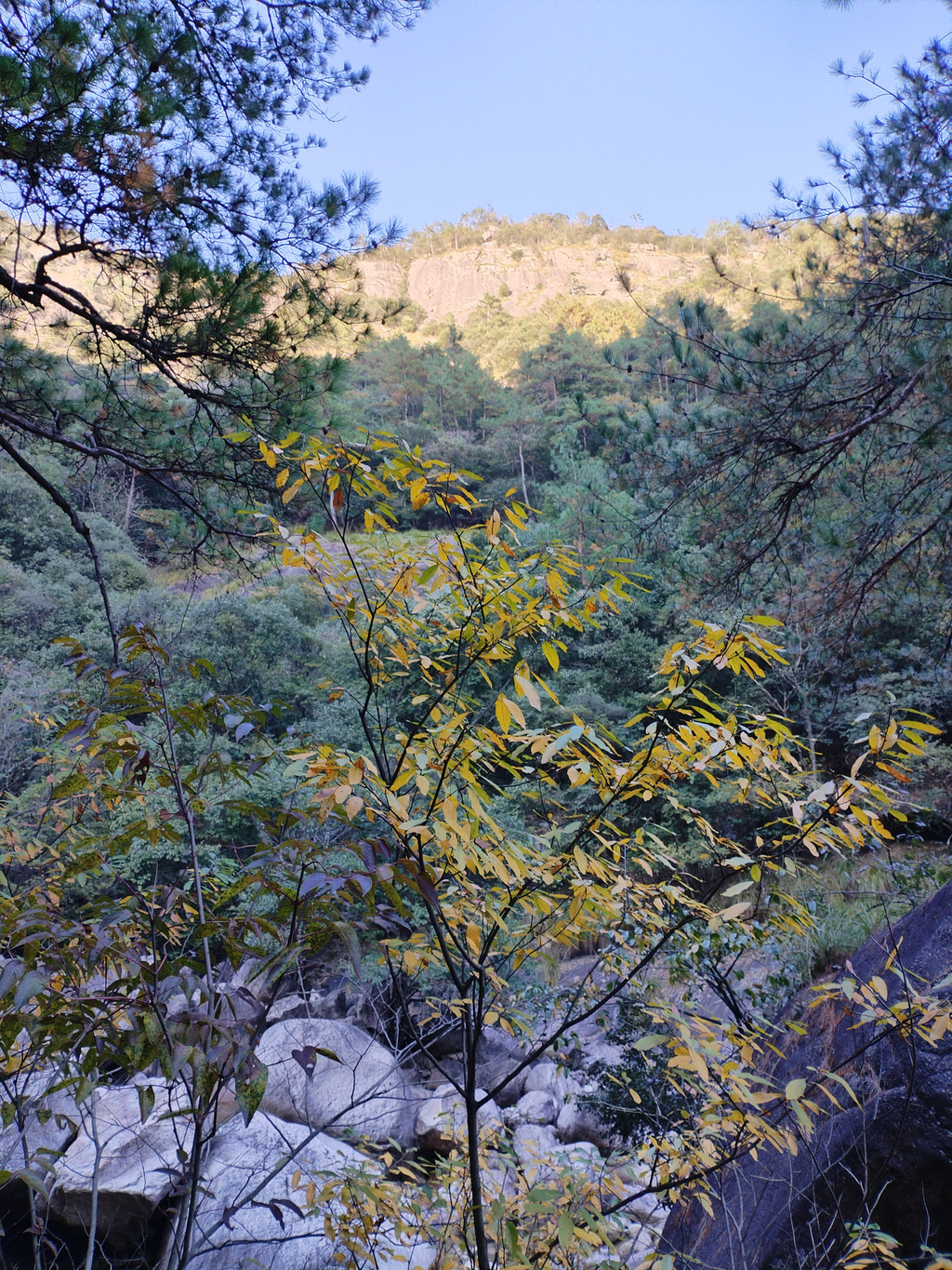 经过检票口后,算是正式进入了翡翠谷。上行的步道沿着峡谷中的碧玉溪而建。溪中有清澈见底的溪水和碧绿如翡翠的清潭,有大大小小、形态万千的石头;溪两岸是险峻的山坡和翠绿的林木——其中很多是大片大片的竹林。