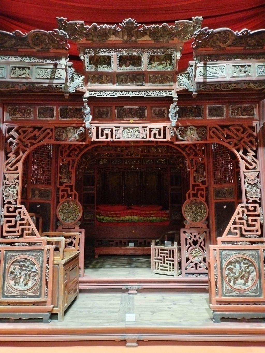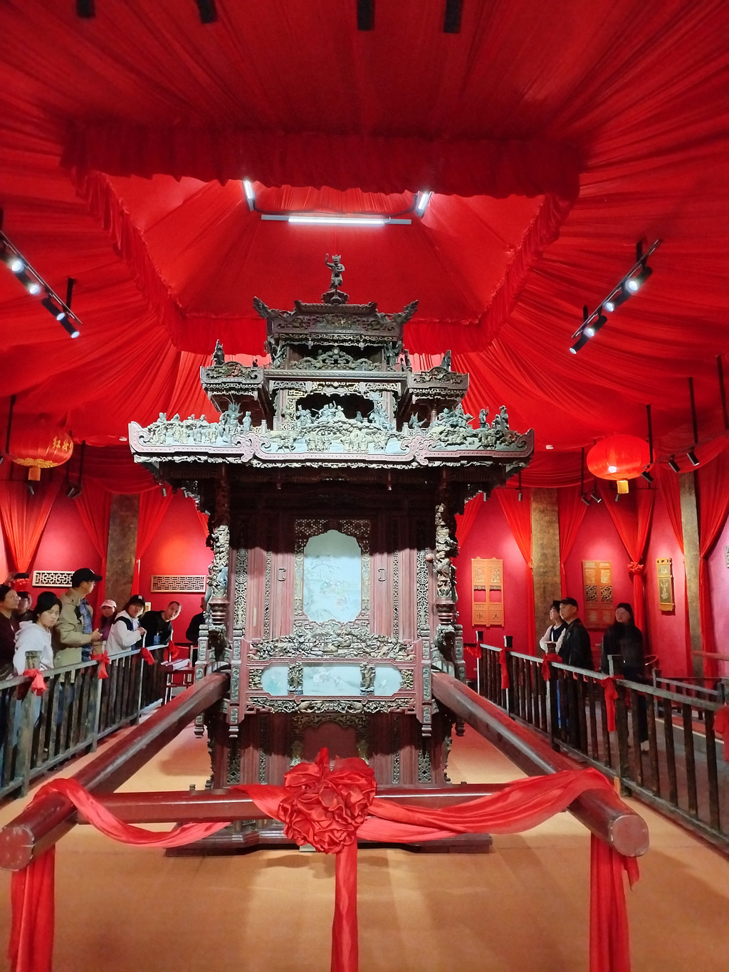 新安江在漳潭村这里形成一个大湾潭,村落就沿岸展开。村口有被誉为“天下第一樟”的千年古樟,树体庞大、浓荫蔽日。而村里的红妆馆,陈列有“天下第一轿”(重约一吨、需十六个人抬)和“天下第一床”,集中展现了古徽州婚嫁民俗与木作工艺。这里还有“汉张留侯祠”——传说汉代留侯张良的后人曾在这里为张良结庐守墓,最终就在漳潭扎下了根,在此繁衍生息。
