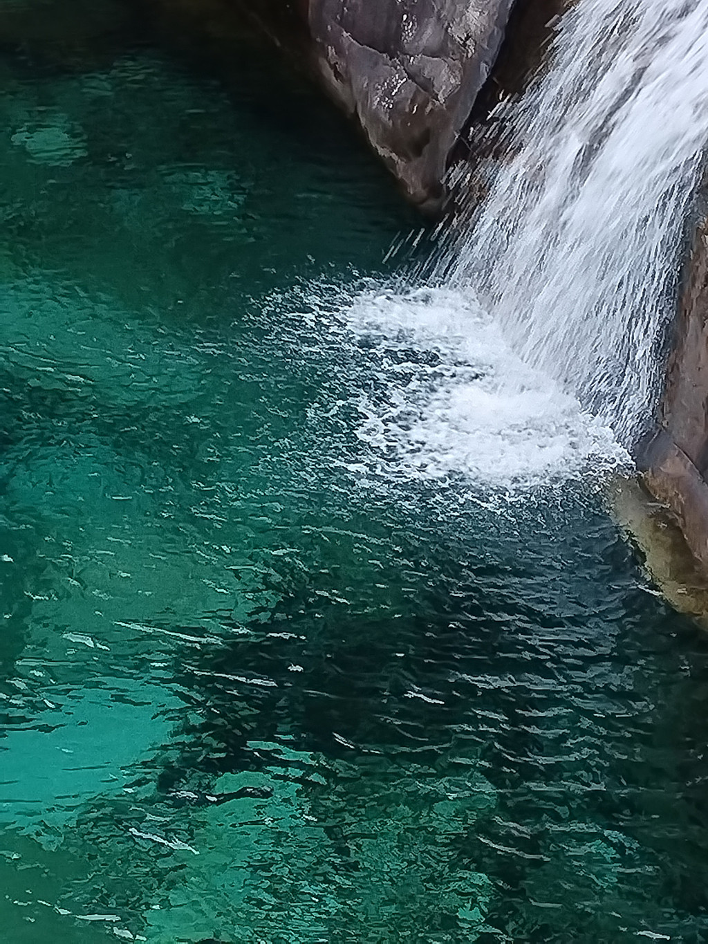 走过情人桥,我们继续沿着碧玉溪前行。一路上的碧水清潭让人眼花缭乱。绿珠池、龙凤池、孔雀池等彩池各美其美。而桥上有桥的鹊桥让阿李能够俯瞰孔雀池,想弄明白池里面的黑眼珠是怎样形成的。