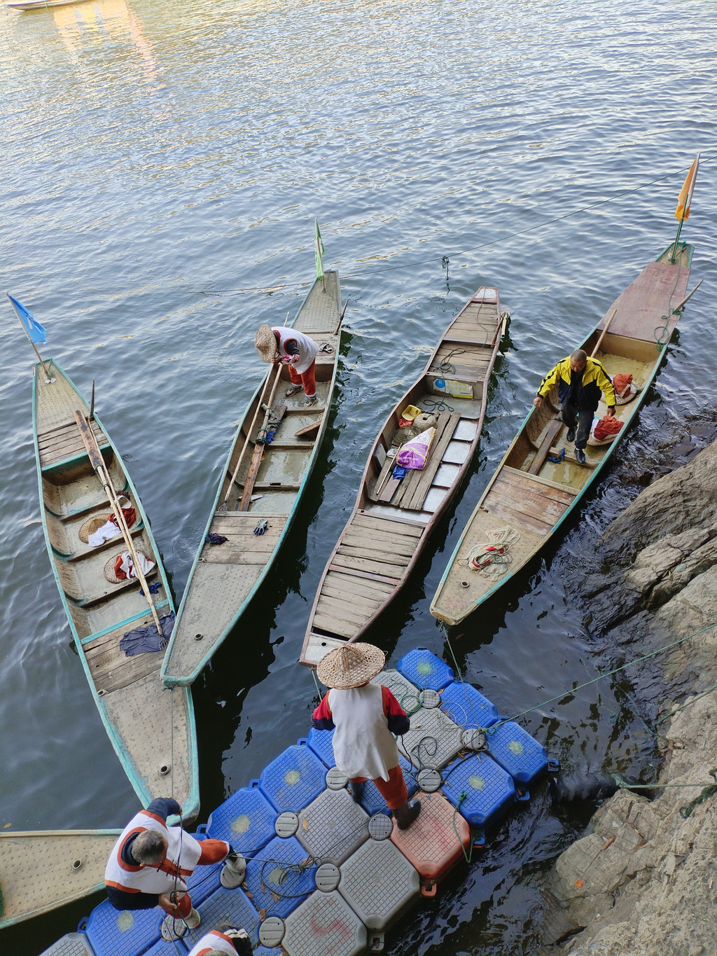 我们的船在返回途中停靠了绵潭,我们上岸观看了绵潭著名的“九姓捕鱼”表演。