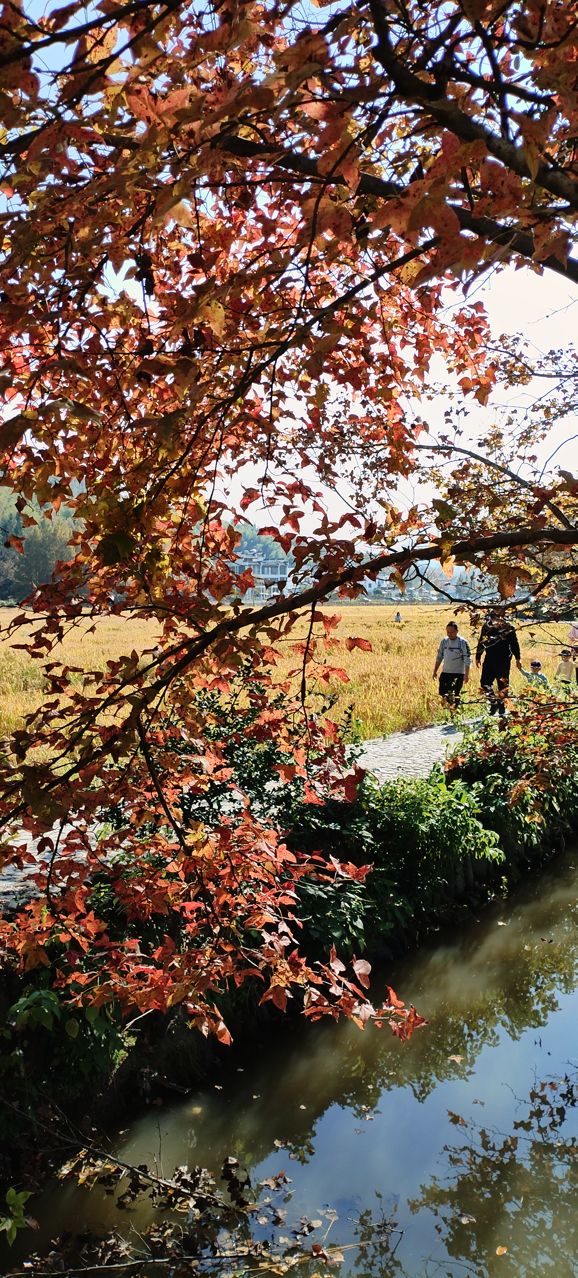 2025年11月16日,太阳特别火热。上午,阿李和友友们游玩了塔川村,欣赏了仰慕许久的塔川秋色;下午,我们徒步两公里,来到宏村,欣赏了宏村灿烂秋色,参观了它遐迩闻名的牛形人工水系。