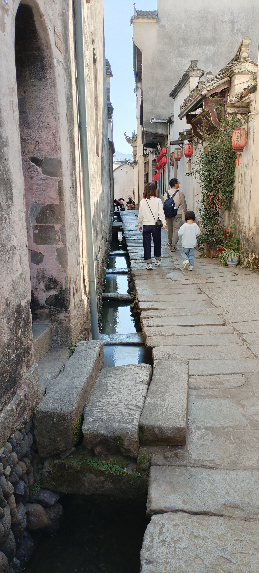 阿李和友友也按照要求过了平安坎,走进了古色古香的村落,欣赏白墙黑瓦的徽派民居,欣赏幽深的小巷,欣赏小巷里静静流淌的小水渠。