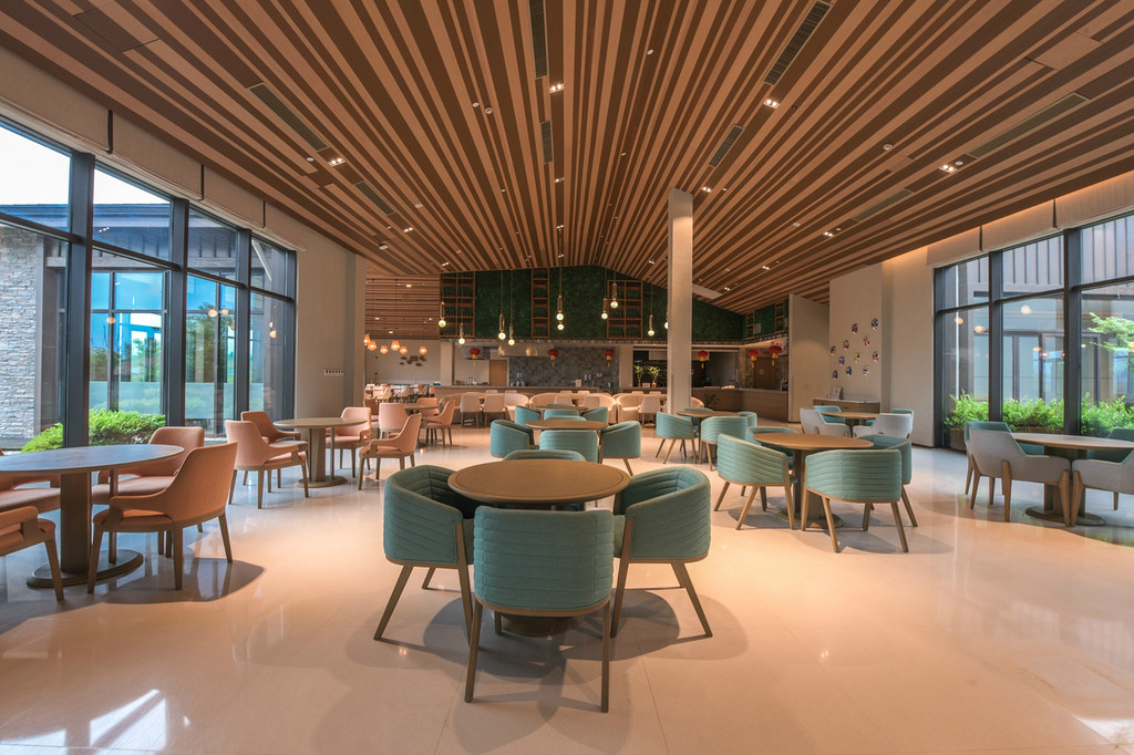 在第三产业当中,安吉县旅游业与消社会消费品零售业占比例很高,而旅游业和消费方面的收入当中,高端酒店业做出了不小的贡献。这里就是安吉奢华酒店之一的club med 安吉度假村的中餐厅,是不是很好看?想不想在这里小住一阵子呢?